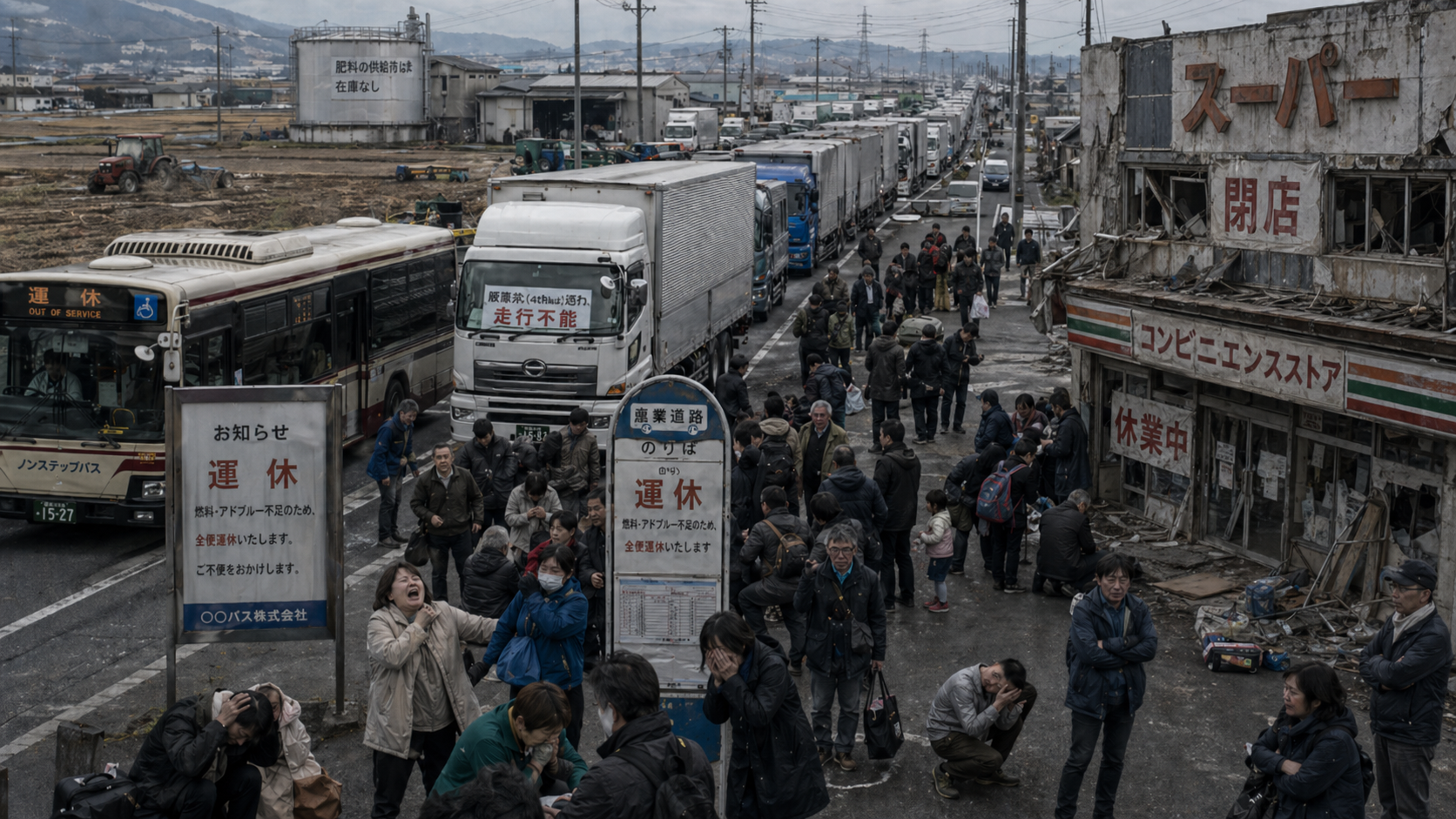 この「切れたらどうなる?」を知った時、最初は「やべっ、Amazonから物が届かなくなる」などと悠長なことを思いましたが、それどころか、下手をすると近所のスーパーやコンビニ、商店、飲食店に商品や原材料がまったく届かなくなります。パタッと人間の心臓が止まる瞬間をイメージしました。ちなみに、先日、電池を買いに近所のホームセンターに行ってきましたが、なんと、屋外のガーデニングコーナーがやたらと混んでいます。これは本当の話。twitterで検索をかけましたら、どうやら、物流が止まることを懸念する人が増え、野菜の苗木が売れているようです。手狭なマンション住まいは青じその小さな鉢植えを70円で買いました。