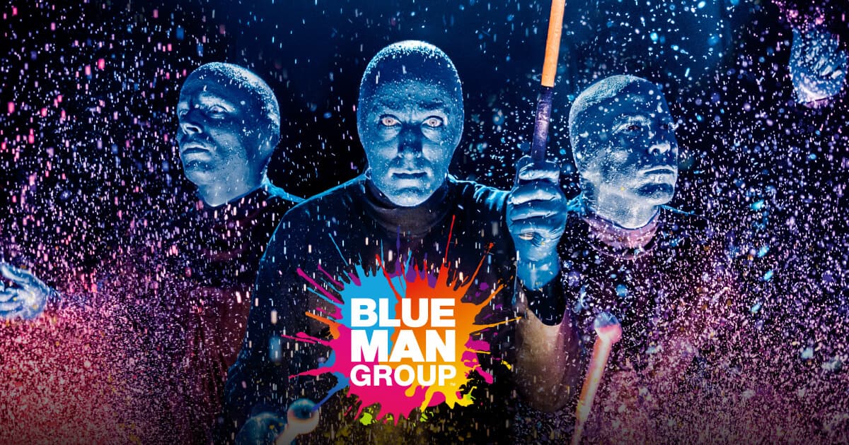 そして、空を見上げれば看板にはBlue Man Groupの文字とともに……